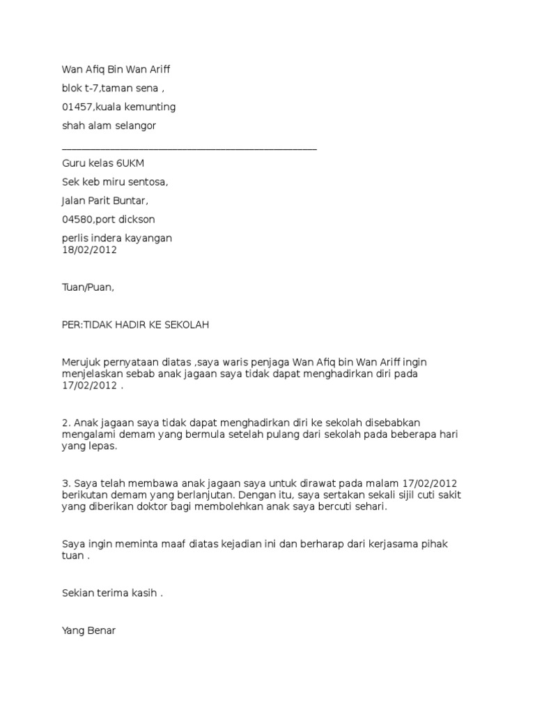 Surat Rasmi Tidak Hadir Ke Sekolah 2015 Beadwindles